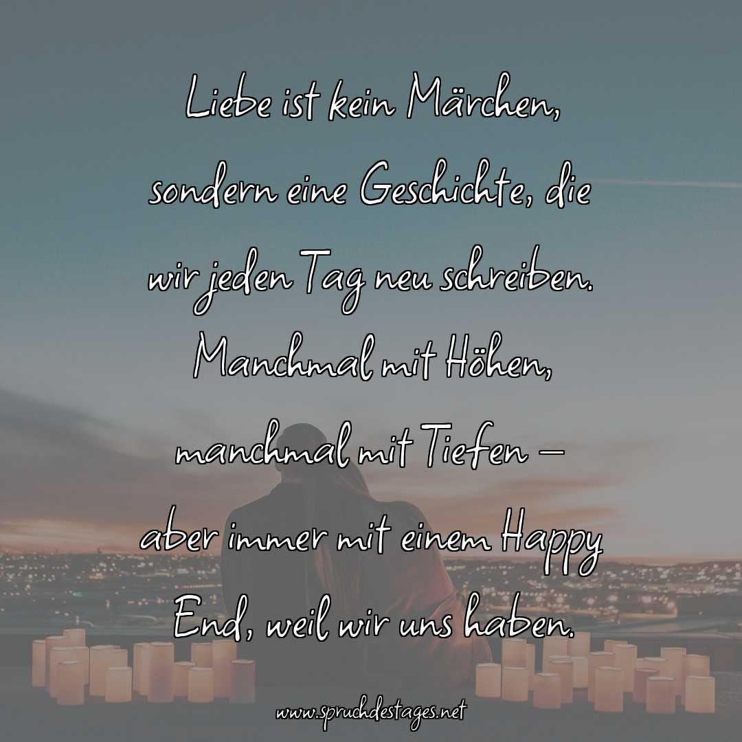 Unser heutiger Spruch des Tages ist: „Liebe ist kein Märchen, sondern eine Geschichte, die wir jeden Tag neu schreiben. Manchmal mit Höhen, manchmal mit Tiefen – aber immer mit einem Happy End, weil wir uns haben.“