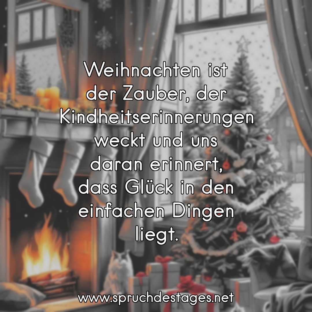 Heute ist Heilig Abend! Wir wünschen allen eine frohe und friedliche Weihnachtszeit! Der heutige Spruch des Tages ist daher: „Weihnachten ist der Zauber, der Kindheitserinnerungen weckt und uns daran erinnert, dass Glück in den einfachen Dingen liegt.“