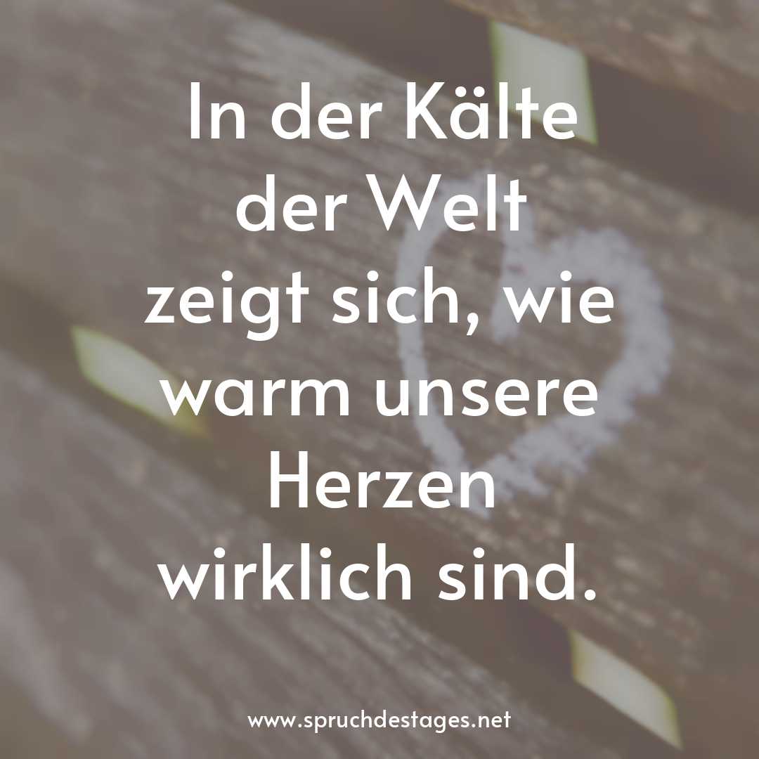 Unser heutiger Spruch des Tages ist: „In der Kälte der Welt zeigt sich, wie warm unsere Herzen wirklich sind.“