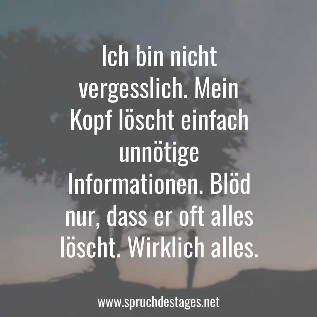Unser heutiger Spruch des Tages ist: „Ich bin nicht vergesslich. Mein Kopf löscht einfach unnötige Informationen. Blöd nur, dass er oft alles löscht. Wirklich alles.“